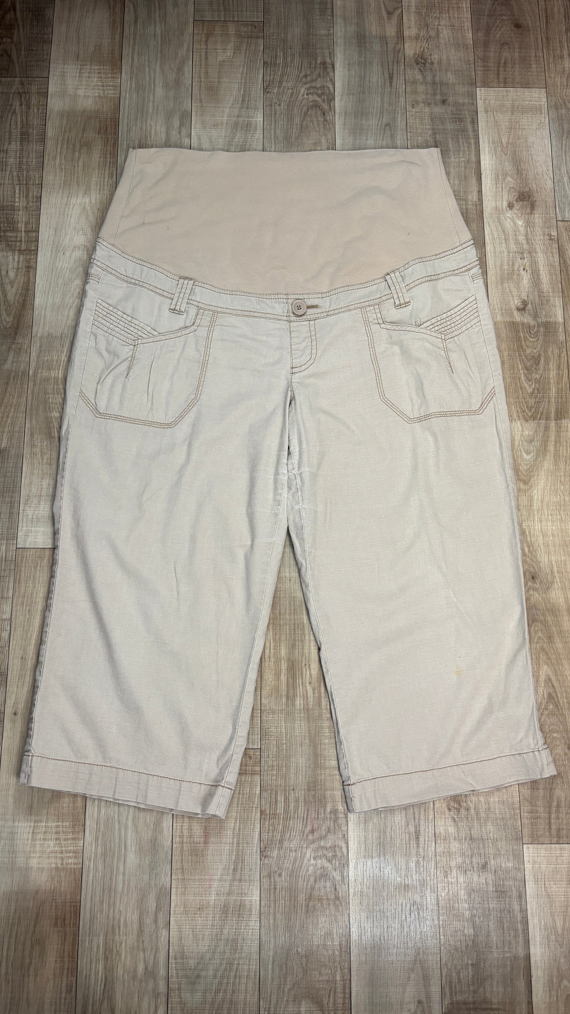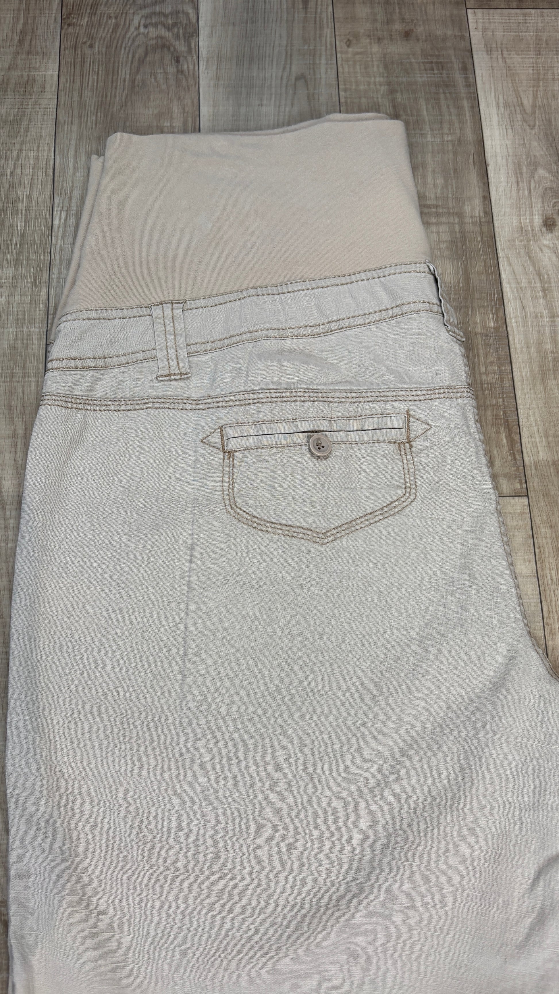 Imparfait. Petite tache sur le bas de la jambe gauche. Beau 3/4 basique avec un tissu confortable et léger.