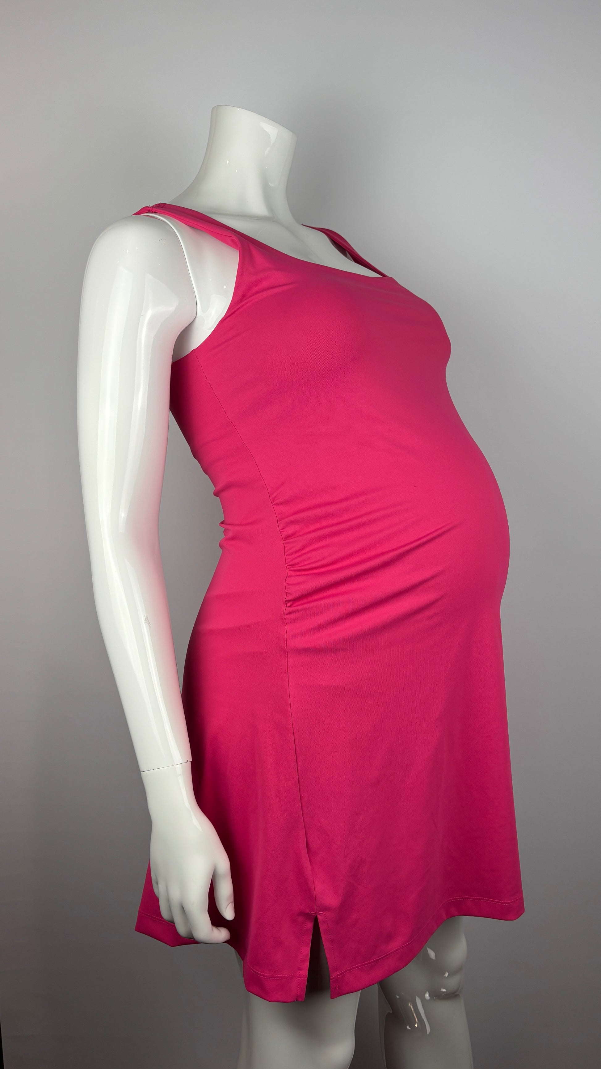 Excellent état. Tissu doux, extensible et léger. Magnifique couleur! Robe parfaite pour le sport. Je dirais même une robe tout inclus! Elle a une brassière et des shorts avec poche intégrés.